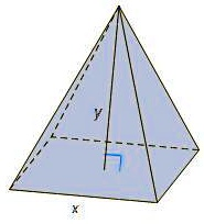 where xxx is the length of a side of the square base. The height yyy is the perpendicular distance from the apex to the center of the square base.