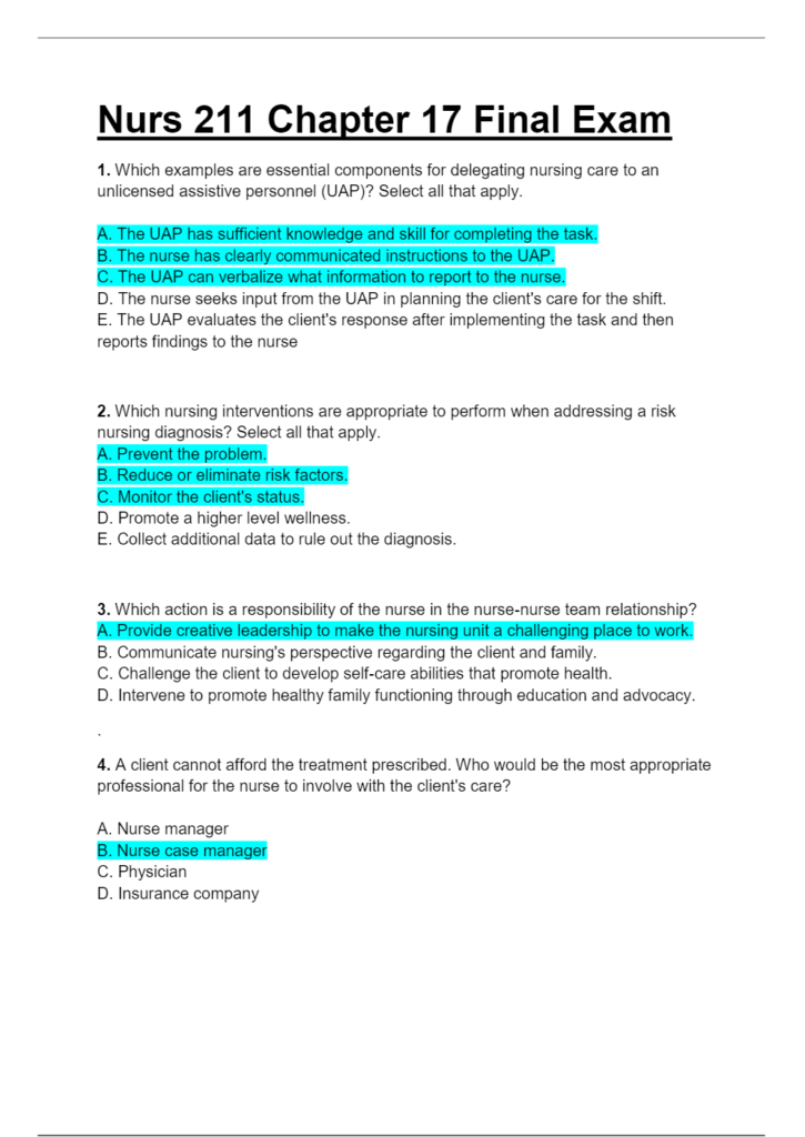 unlicensed assistive personnel (UAP) to help the client to the toilet. The nurse
