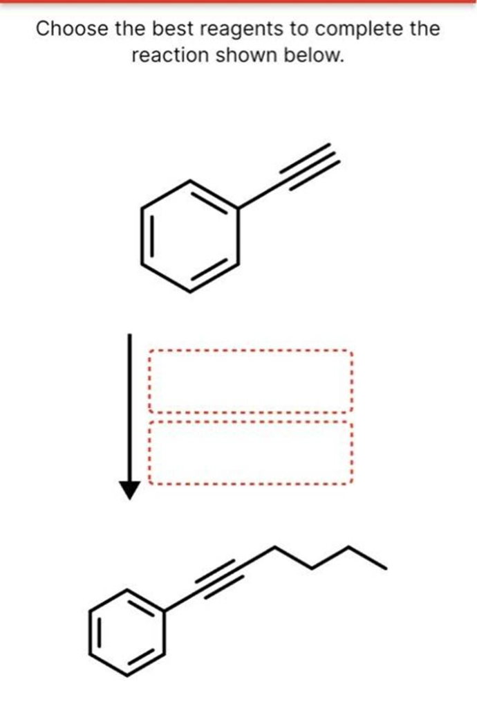 Choose the best reagents to complete the reaction shown below. Select to Draw Select to Draw H/P: HCI (excess) HBr (1 equiv) H/Lindlar’s catalyst Select to Draw Select to Draw Choose the best reagents to complete the reaction shown. Br Br Predict the major product for this reaction. Ignore inorganic byproducts. 1. BH3-THE 2. H2O2, NaOH Select to Draw Draw the major product for this reaction. Ignore inorganic byproducts. 1. Hg(OAC)2, H20 2. H2SO4 Select to Draw