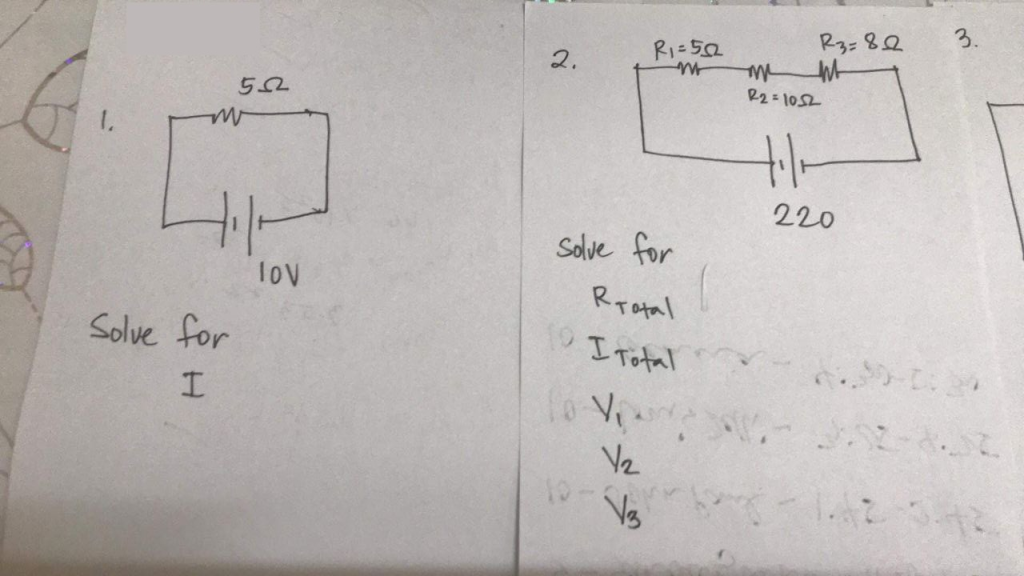R3=82 R1=55 3. 2. R2=1052 552 220 Solve for ١٥٧ RTotal Solve for 10 ITotal I V2