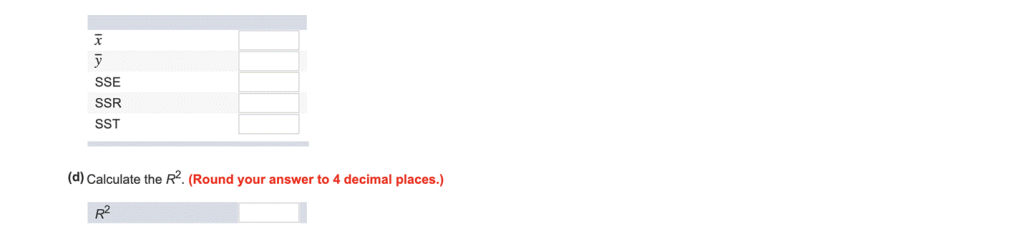 - Use SUM functions to find SSxxSS_{xx}, SSyySS_{yy}, and SSxySS_{xy}: