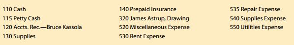 Reconciling a bank statement; journalizing a bank service charge, a dishonored check, and petty cash transactions James Astrup owns a business called LawnMow. Selected general ledger accounts are given below