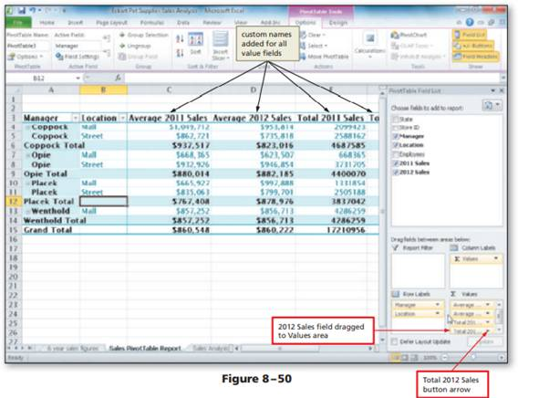 • Enter Total 2012 Sales in the Custom Name text box to rename the value fi eld.