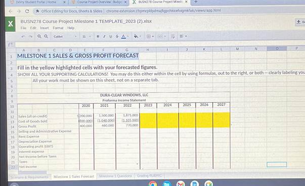 Fill in the yellow highlighted cells with your forecasted figures.
