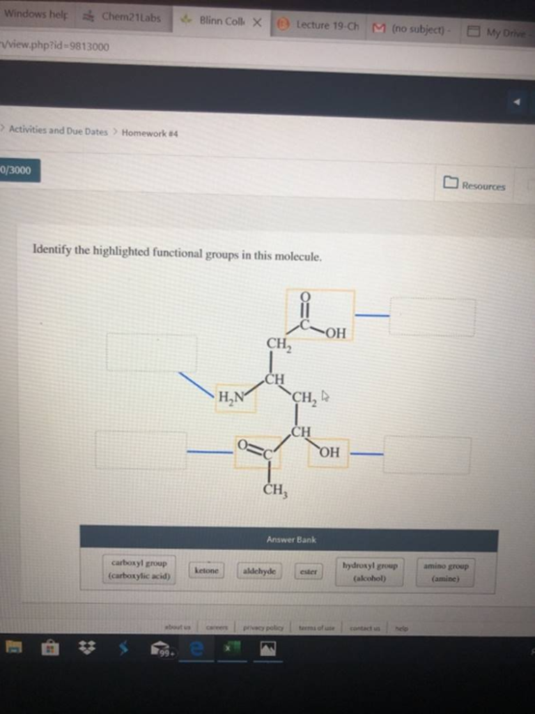 carboxyl group (carboxylic acid) ketone aldehyde ester hydroxyl group (alcohol amino group (amine)