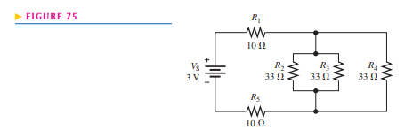 Determine the current through each resistor in Figure 75; then calculate each voltage drop.