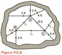 To determine the currents ( I_1 ), ( I_2 ), and ( I_3 ) in the network depicted in Fig. P2.8, we can apply Kirchhoff’s Current Law (KCL). KCL states that the algebraic sum of currents entering and leaving a node is zero. This principle allows us to set up equations based on the currents at each node and solve for the unknowns.
