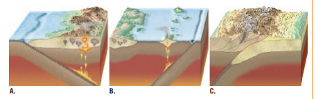 Referring to the accompanying diagrams that illustrate the three types of convergent plate boundaries, complete the following: