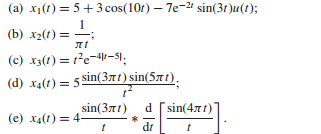- **x₁(t) = 5 + 3cos(10t) – 7e^(-3t)sin(30t)u(t)**