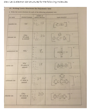 IV. Writing Lewis Structures for Polyatomic Ions 4. Write the Lewis structure for each of the following