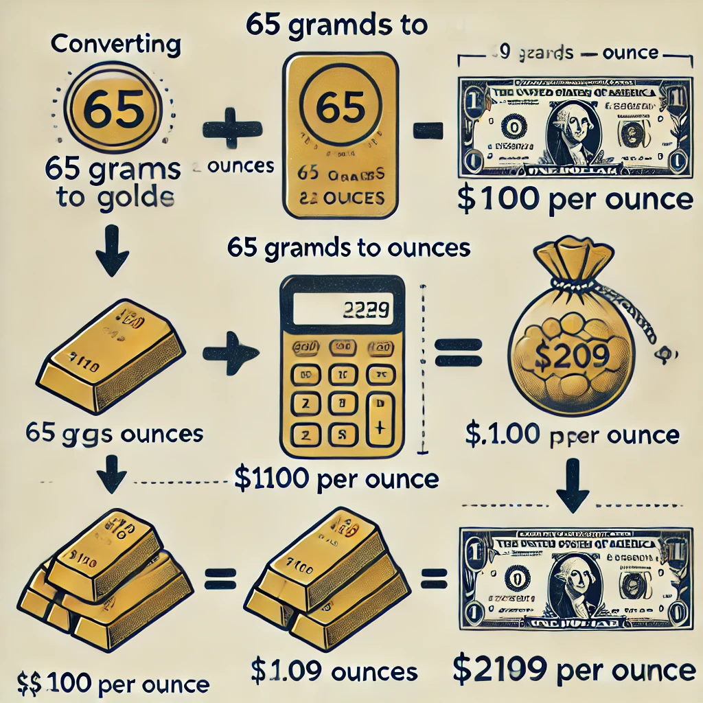 So, 65 grams is approximately 2.09 ounces of gold.