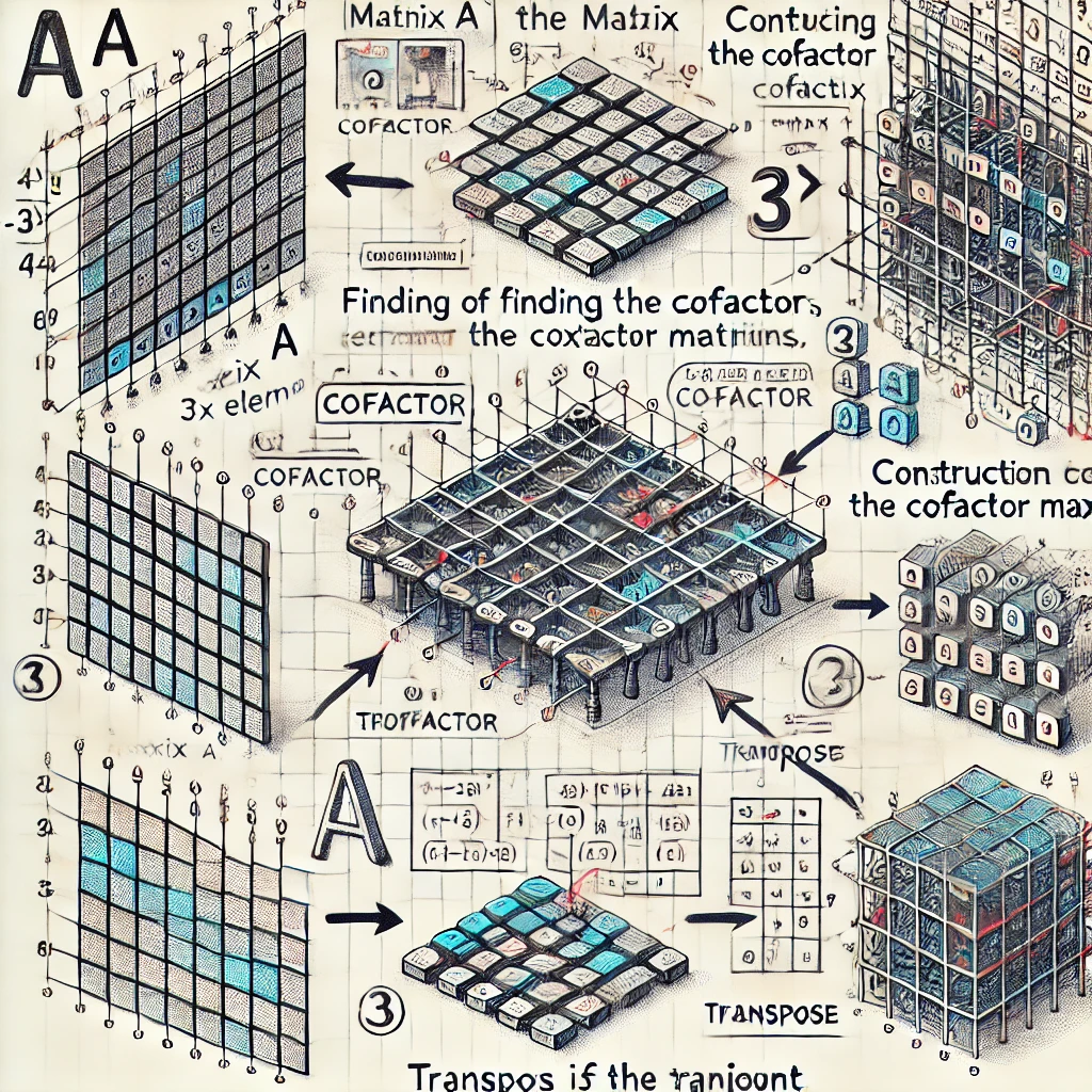 \text{adj}(A) = \text{transpose}(\text{cofactor matrix})