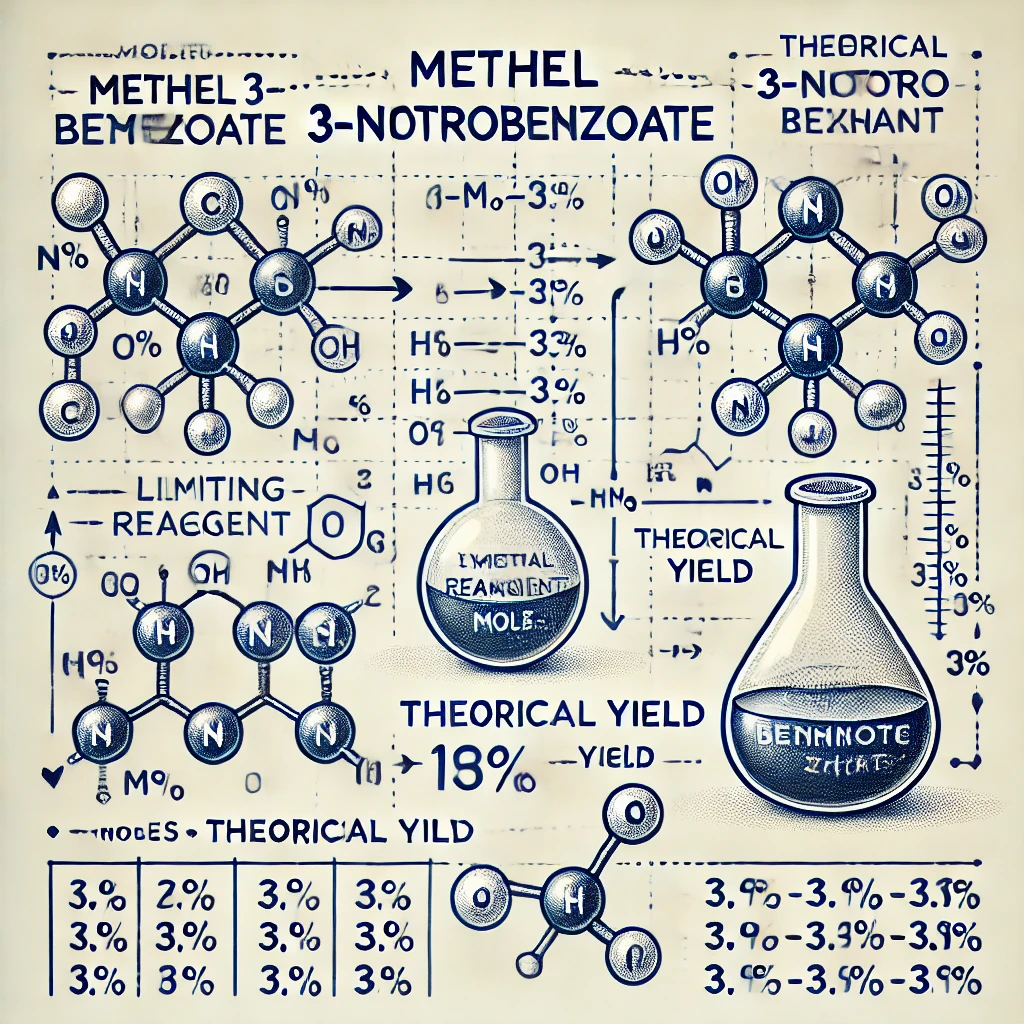 - Percent yield for methyl 3-nitrobenzoate = 100% (assuming no other data, it’s implied the product was recovered at full efficiency).