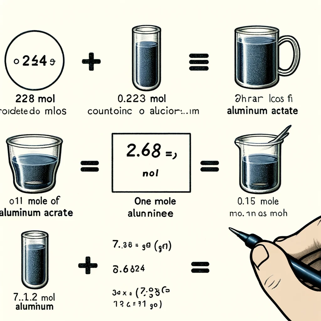 The key idea here is to first determine the amount of moles of aluminum acetate and then find how much aluminum is present in that quantity. Since each formula unit of aluminum acetate contains one atom of aluminum, the number of moles of aluminum will be the same as the number of moles of aluminum acetate. By using the molar mass of aluminum (26.98 g/mol), we can calculate the total mass of aluminum in the given amount of aluminum acetate.