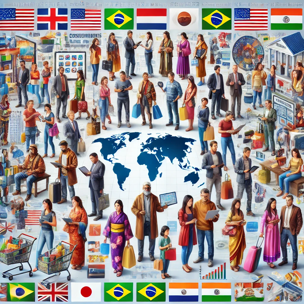Here is the image representing cross-cultural analysis, illustrating the concept of diverse cultural backgrounds and consumer behaviors across different nations. Let me know if you need any further details!
