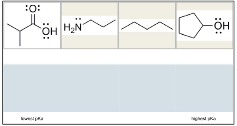 Arrange the acids shown from lowest pKa to highest pKa by clicking and dragging them into position.