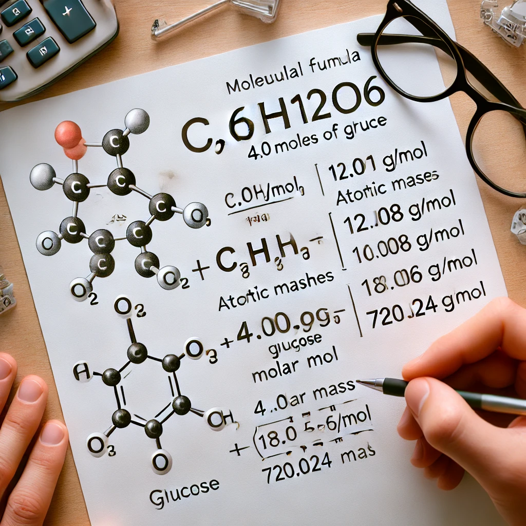 To determine the mass of 4.00 moles of glucose (C₆H₁₂O₆), we need to use the concept of molar mass. The molar mass is the mass of one mole of a substance, and it is usually given in grams per mole (g/mol). To calculate the molar mass of glucose, we first need to add up the atomic masses of all the atoms in its formula.