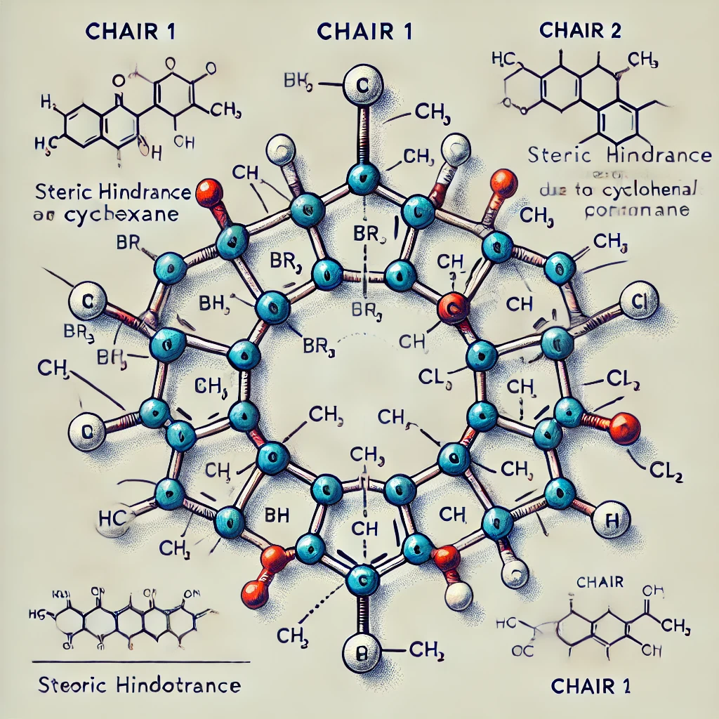 • Chair 2 Stability: If Br or Cl are axial, this conformation is less stable due to steric hindrance.
