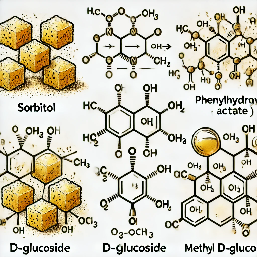 - Sorbitol (formed by reduction with sodium borohydride).
