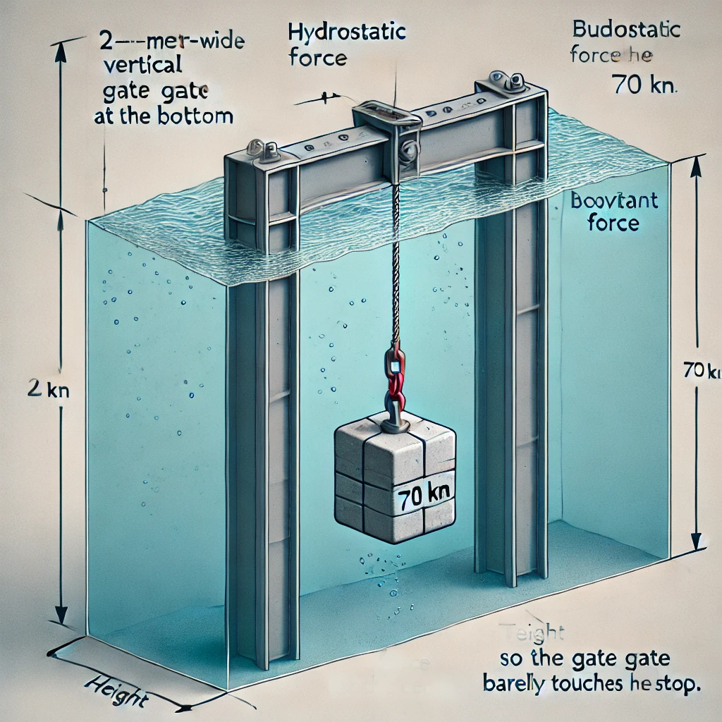 A 2-m wide side rectangular gate is hinged at the bottom