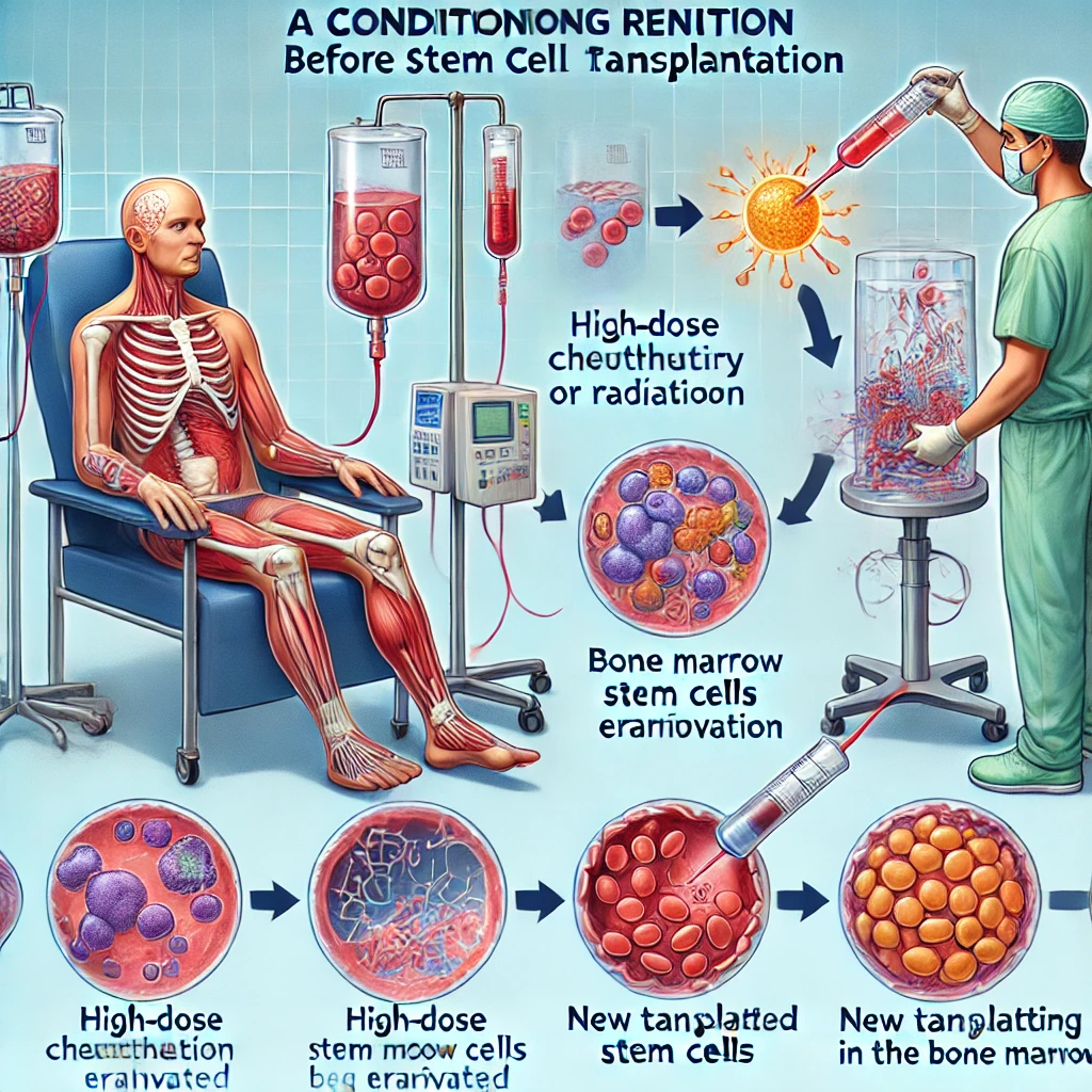 A conditioning or preparative regimen is a critical phase in the process of hematopoietic stem cell transplantation (HSCT). It is a treatment protocol used to prepare a patient’s body before receiving autologous (self-derived) or allogeneic (donor-derived) stem cells. The primary objective of this regimen is to eradicate any remaining malignant cells and create an optimal environment for new, healthy stem cells to engraft.