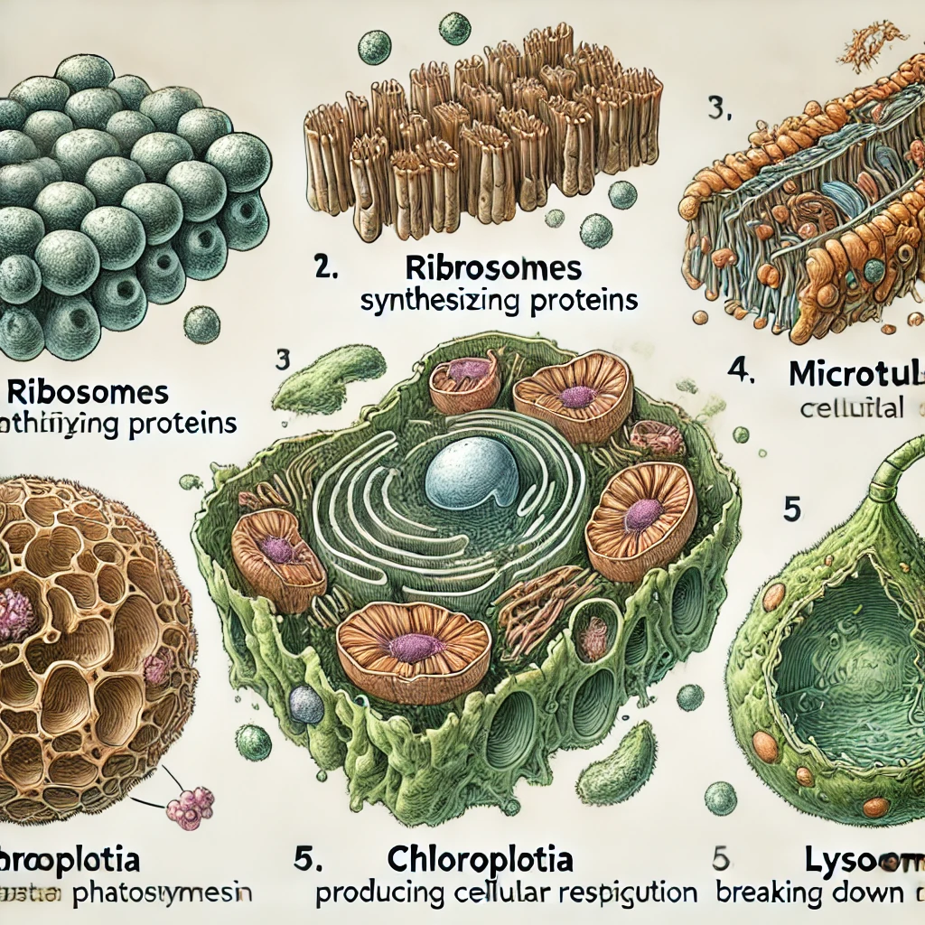 Ribosomes are responsible for translating messenger RNA (mRNA) into proteins. These proteins are essential for cell function, including enzymatic reactions, structural support, and communication within and between cells. - Microtubules (Movement)