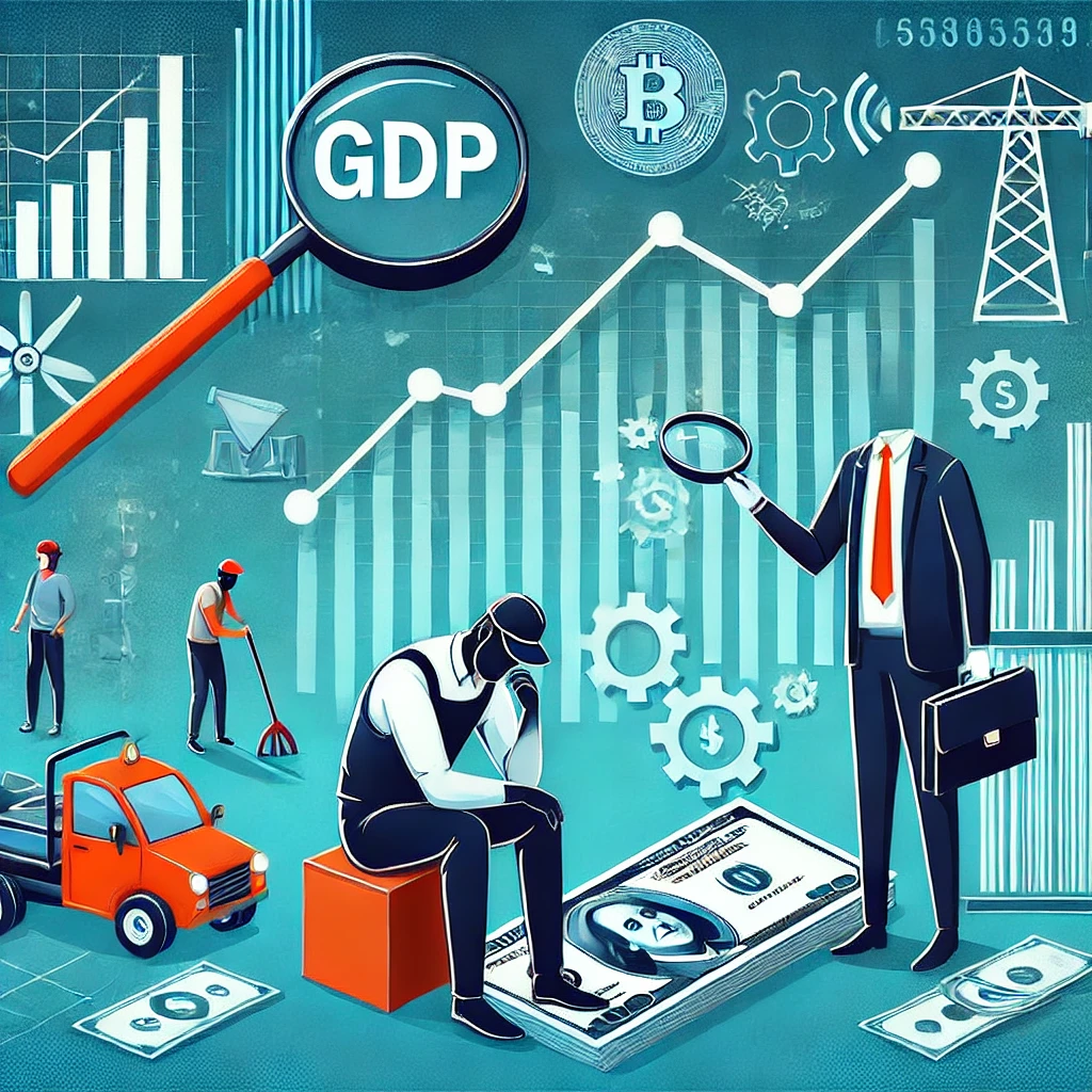 Here is the conceptual illustration representing economic concepts, including GDP growth, unemployment, and economic transactions. Let me know if you need any modifications or further explanations!