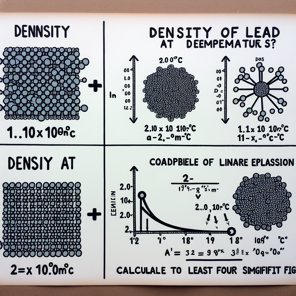 To find the density of lead at 111°C, we can use the concept of thermal expansion and the relationship between temperature and volume change. The density of a material is inversely proportional to its volume. Therefore, when the temperature increases, the volume expands, and the density decreases.