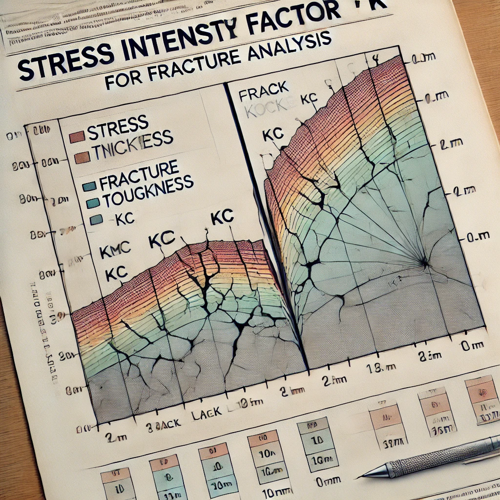 Here is an image illustrating the relationship between the stress intensity factor (K) and the fracture toughness (Kc). It shows how the stress intensity factor for the given crack length (10 mm) is almost equal to the material’s fracture toughness, indicating that the component is close to failure under the given loading conditions.