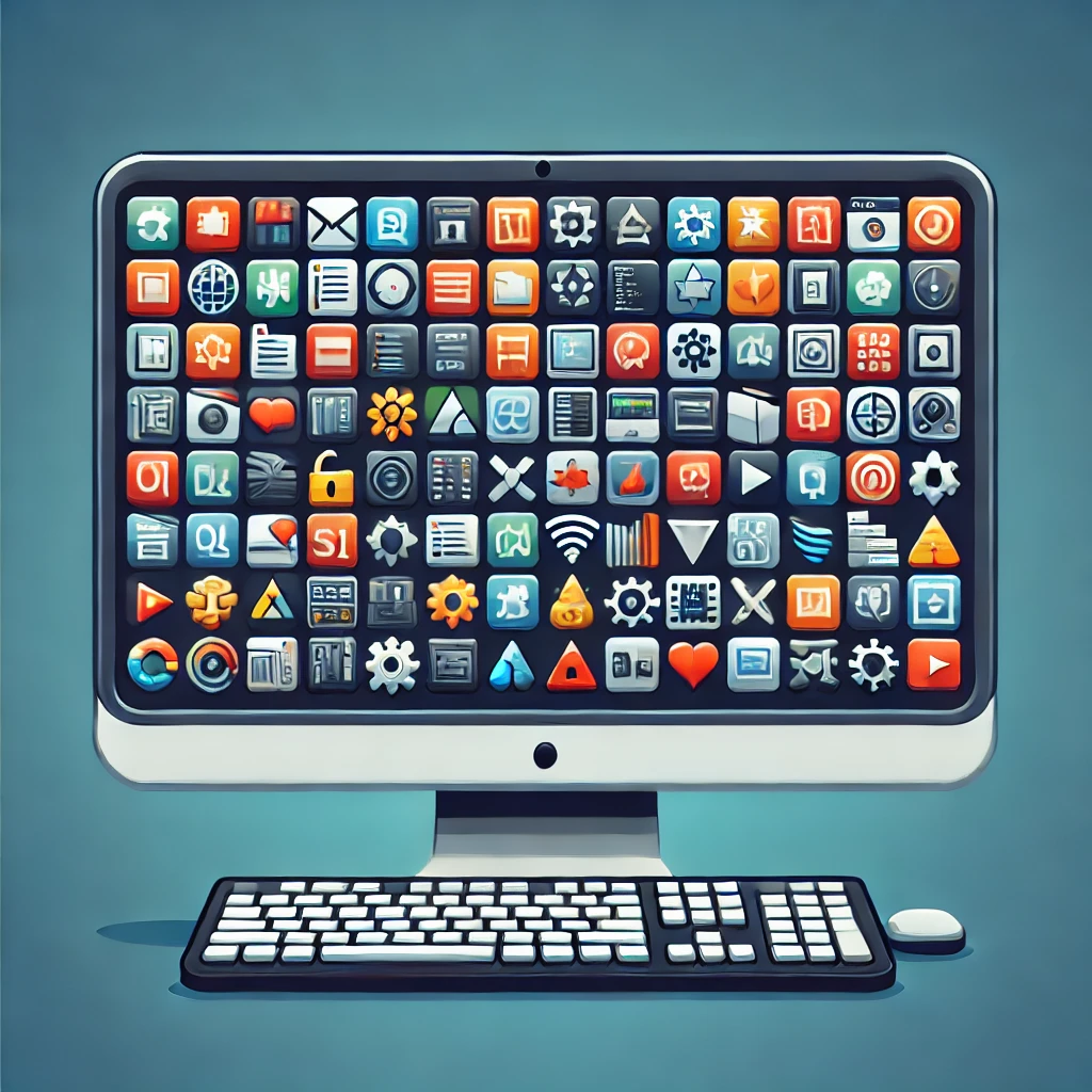 Here is an illustration showing a collection of software packages represented as various icons on a computer screen. This visual highlights different types of software tools such as productivity tools, development environments, and operating systems, bundled together for easy access.