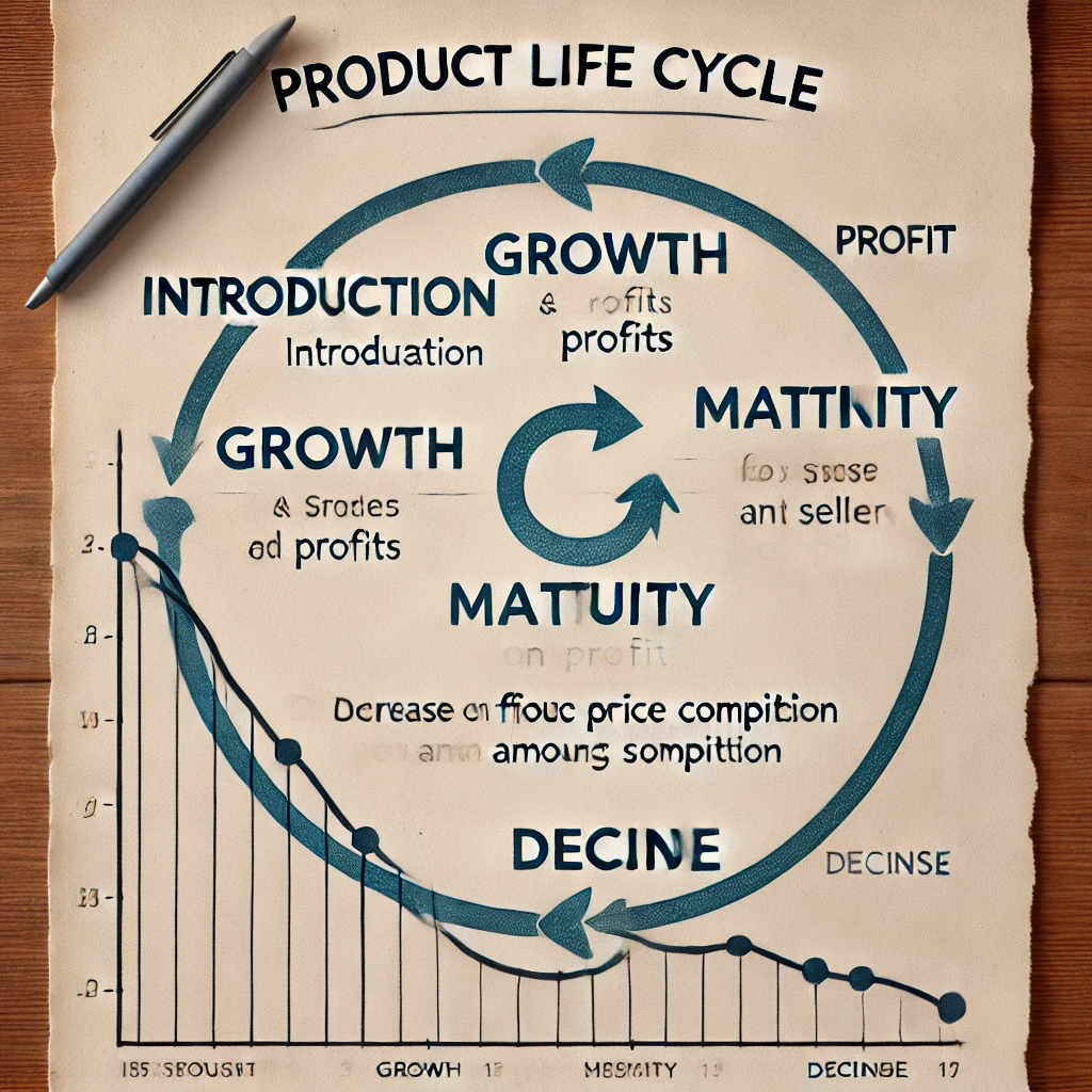 Here’s a visual representation of the product life cycle stages, emphasizing the decrease in profit during the maturity stage due to price competition. You can see how the profit starts to decline as competition increases.