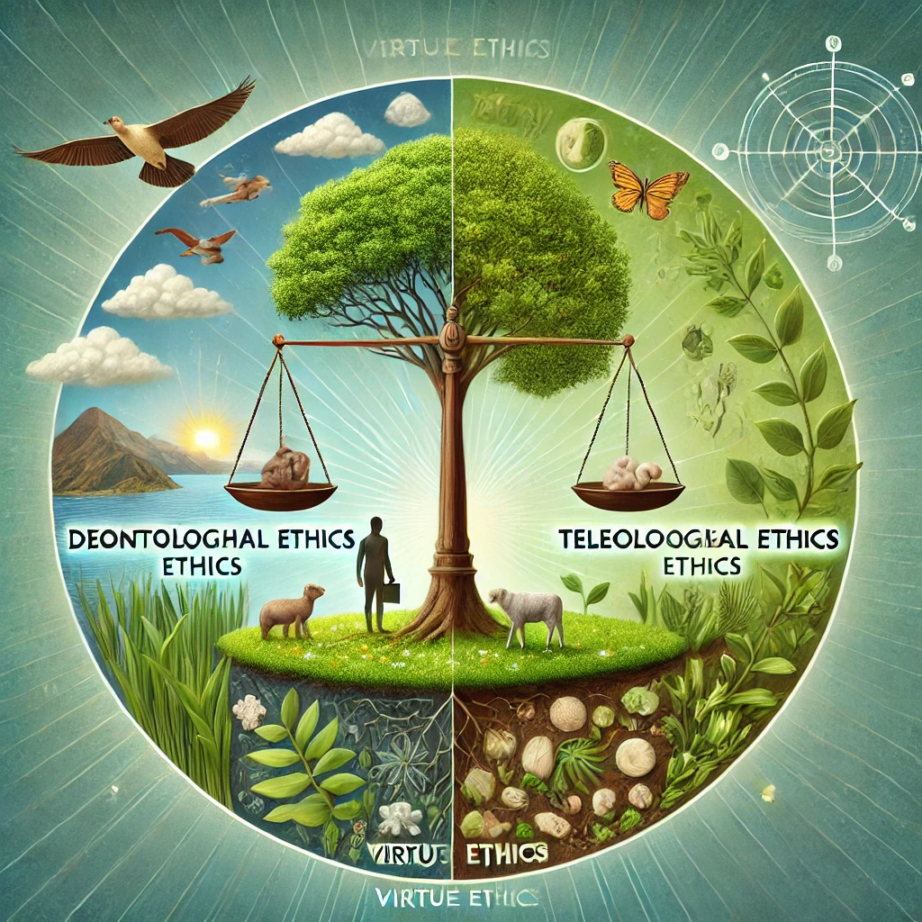 Environmental ethics addresses the moral relationship between humans and the environment, often invoking philosophical frameworks such as deontological ethics, teleological ethics, and virtue ethics to assess our duties, goals, and moral character in relation to nature. Here’s how these ethical approaches are applied to environmental concerns: