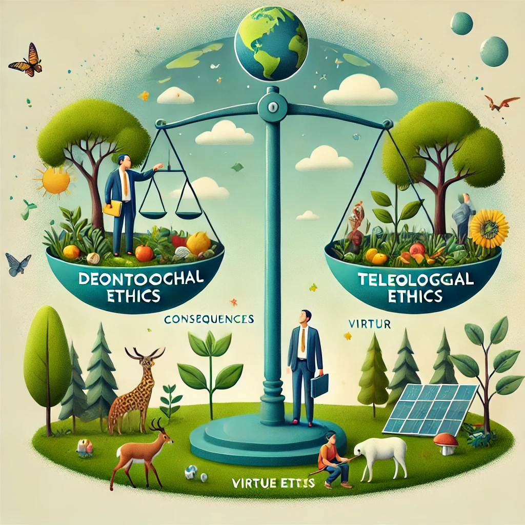 Environmental ethics deals with the moral relationship between human beings and the environment, addressing how human actions affect the natural world. When applying different ethical frameworks such as Deontological Ethics, Teleological Ethics, and Virtue Ethics, each provides a distinct way to approach environmental issues.
