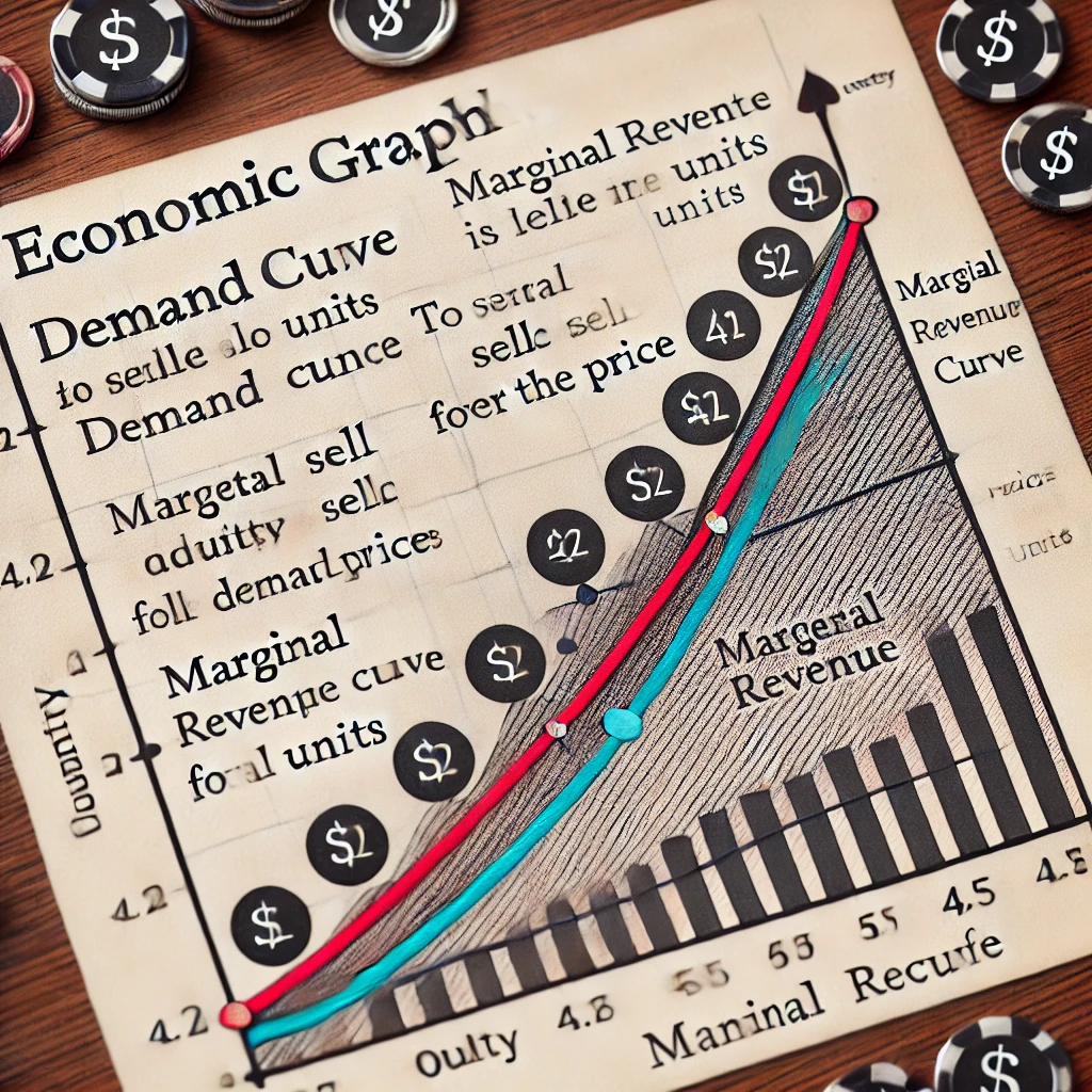 • Marginal Revenue Curve: The marginal revenue curve represents the change in total revenue from producing one more unit of output. In monopolistic or oligopolistic markets (where firms have market power), the marginal revenue curve is always below the demand curve. This happens because, in order to sell an additional unit, the firm must lower the price not only for the extra unit but for all units sold, which decreases the marginal revenue. In perfectly competitive markets, the marginal revenue curve is identical to the price line, as firms can sell any quantity at the prevailing market price.