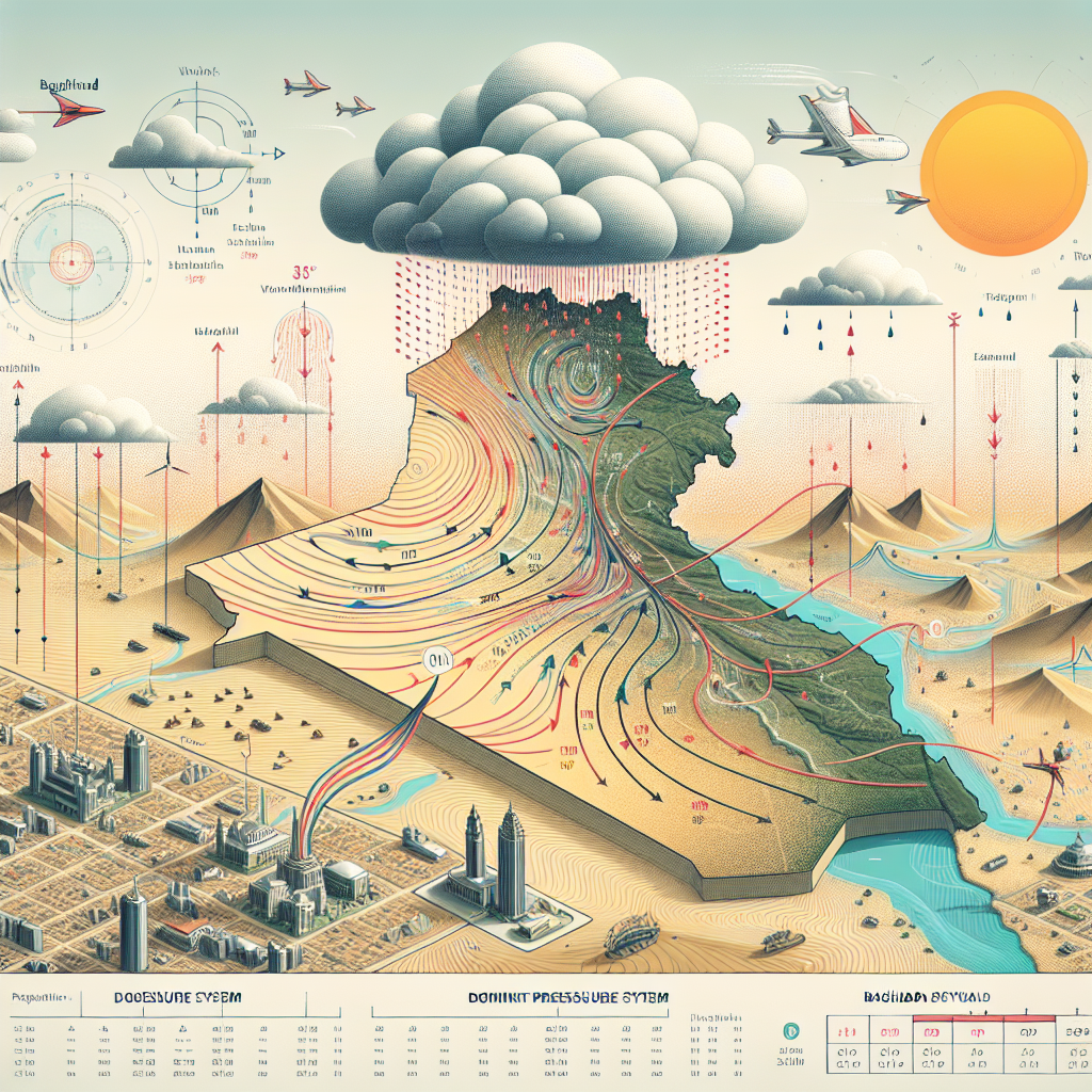 Baghdad, located in Iraq, experiences a hot desert climate, characteristic of the broader Middle East. The Subtropical High Pressure System is a high-pressure zone that dominates much of the Earth’s subtropical latitudes, typically situated between 20° and 30° latitude, both north and south of the equator. This system is generally stable and characterized by descending air, which prevents cloud formation and leads to dry conditions.