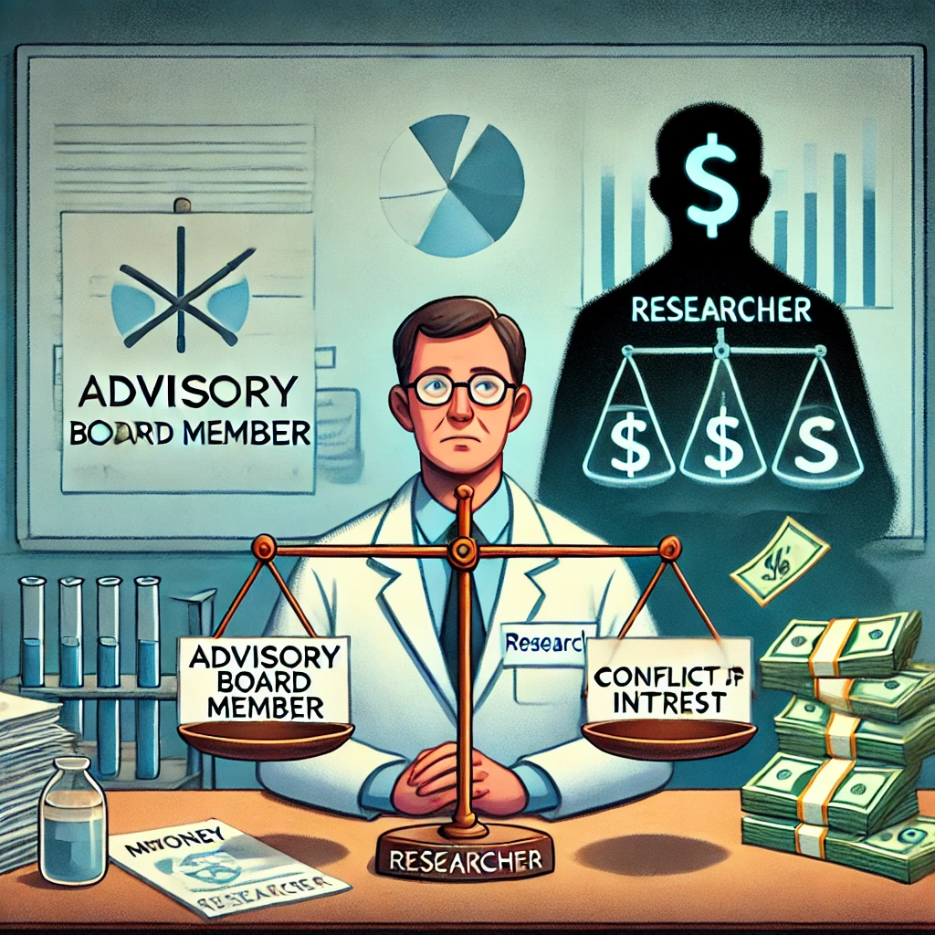 Being on an advisory board means the researcher has a formal relationship with the sponsoring organization. This could lead to a bias—whether intentional or subconscious—in how they design, conduct, analyze, or report the research. The researcher might feel pressured to produce favorable results to maintain a good relationship with the sponsor, secure future funding, or advance their career. Even if the researcher acts with full integrity, the perception of bias can still damage the credibility of the research.