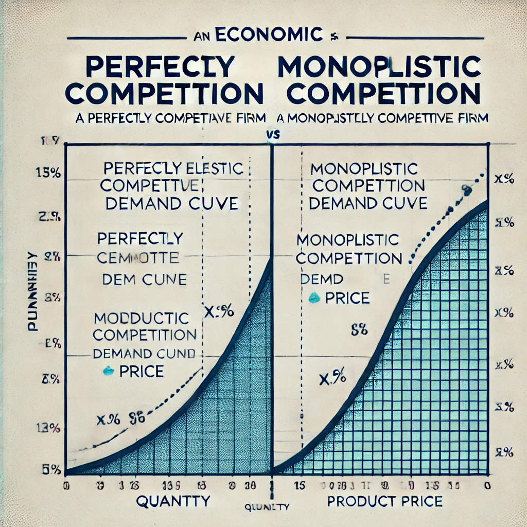 However, in monopolistic competition, firms sell products that are similar but not identical (e.g., different brands of toothpaste, coffee, or clothing). This differentiation gives firms some degree of pricing power, making the demand curve less elastic than in perfect competition.