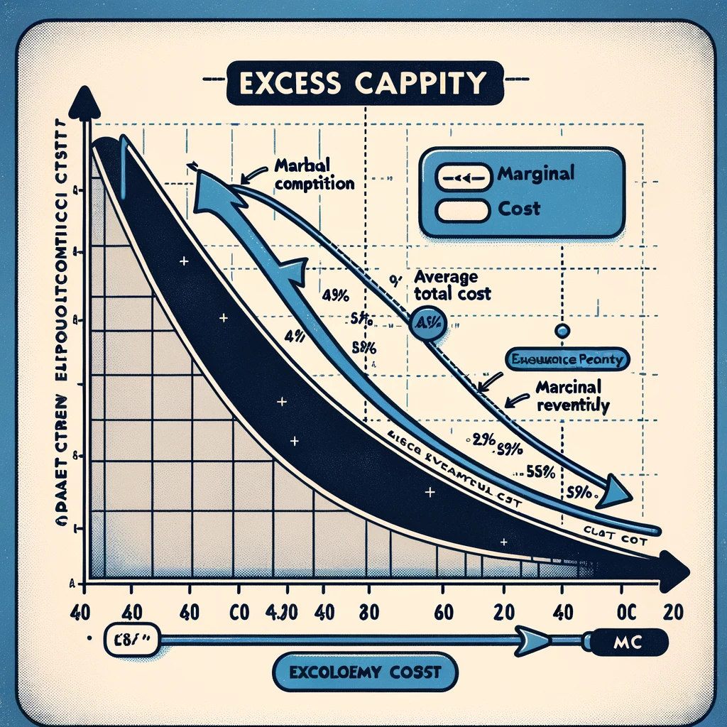 Here is an economic graph illustrating excess capacity in monopolistic competition. It highlights how firms produce at a point where the demand curve is tangent to the average total cost (ATC) curve but not at its minimum, leading to excess capacity.