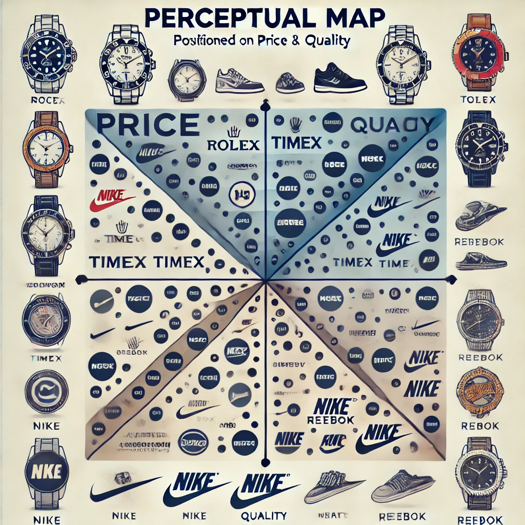 Now, generating an image of a perceptual map showcasing different brands based on quality and price.