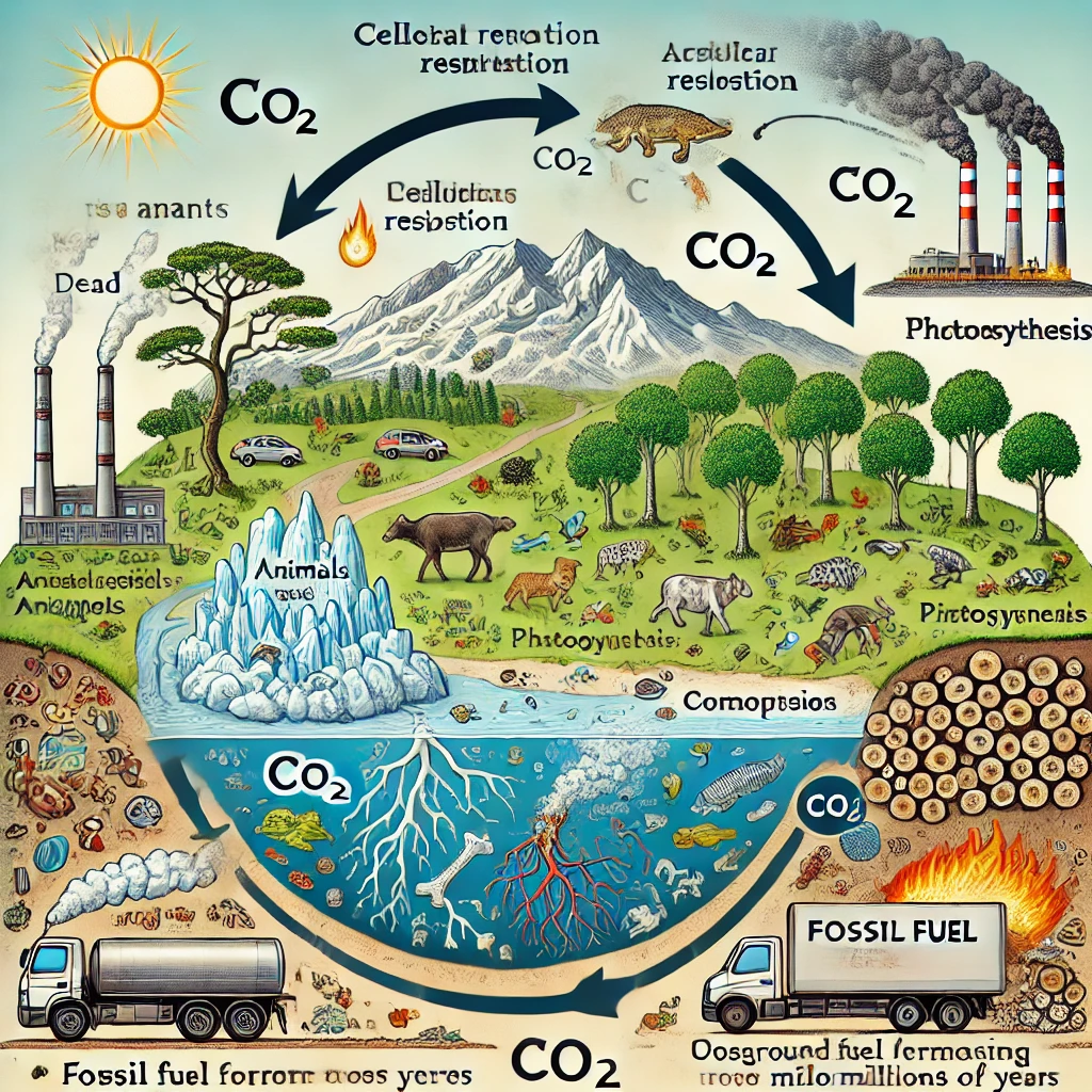 - Description: Plants use sunlight, water, and CO₂ to produce glucose and oxygen. This process helps maintain balance in the carbon cycle by reducing atmospheric CO₂ levels.