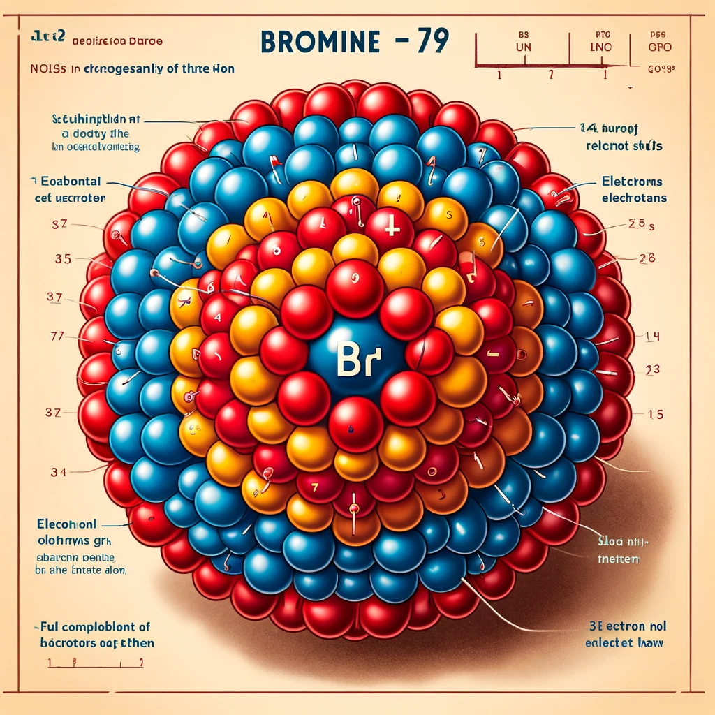 Now, I will generate an image to visually represent the atomic structure of Br⁻-79, including the number of protons, neutrons, and electrons.