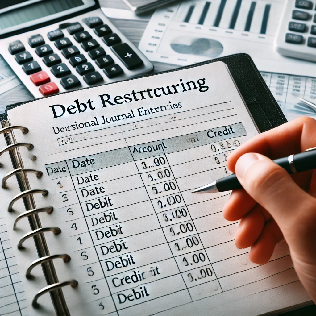 I’ve provided a professional accounting journal image that visually represents the debt restructuring process. Let me know if you need further details or explanations!