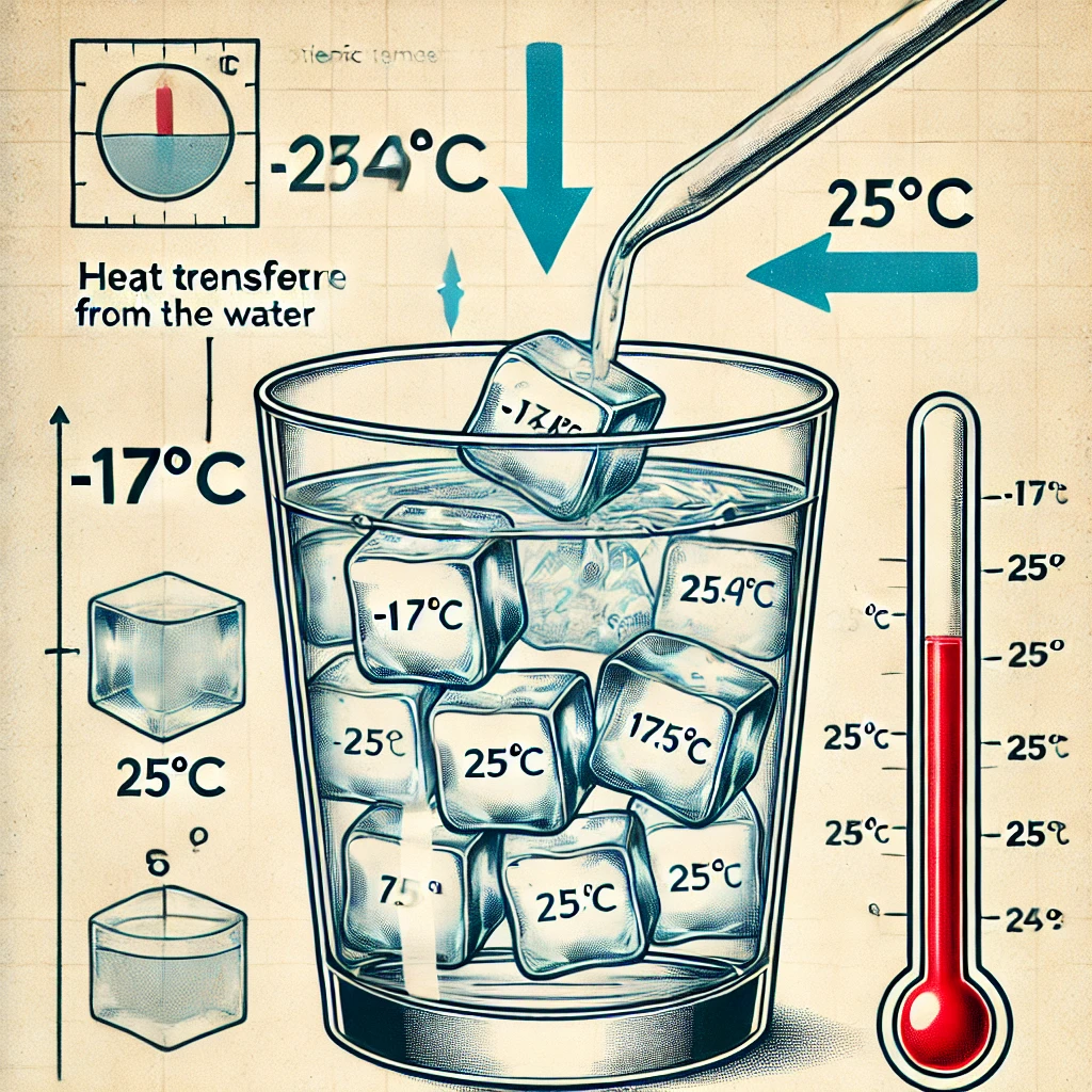 Now, I’ll generate an image illustrating the process of heat transfer between ice and water.