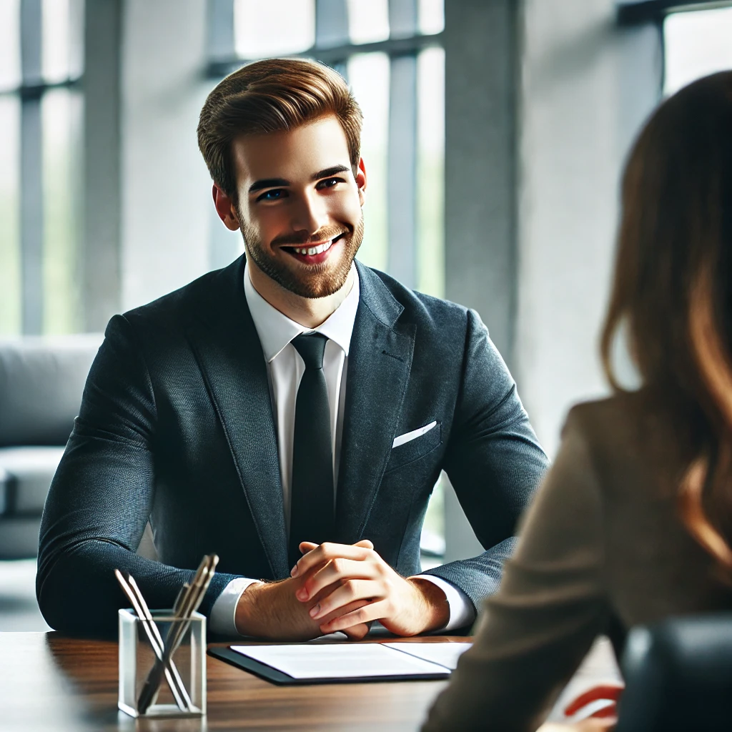 Image: I will now create an image that represents Chester dressing professionally and engaging with a client in a business setting.