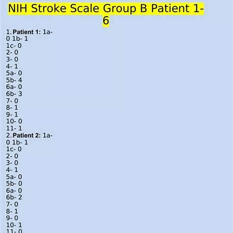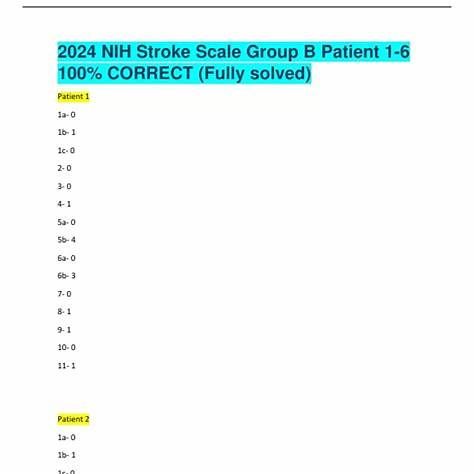 NIH stroke scale is a certification for stroke rating, you have answers for group A patients but I need answers for group B patients. They are six questions.
