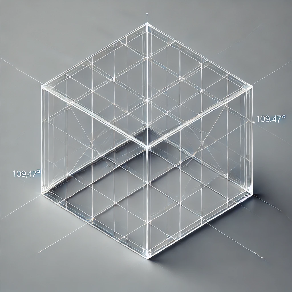 Magnitude: 3s2=3s\sqrt{3s^2} = \sqrt{3}s cos⁡θ=3s23s2=−13\cos \theta = \frac{3s^2}{3s^2} = -\frac{1}{3} θ=cos⁡−1(−13)≈109.47∘\theta = \cos^{-1}(-\frac{1}{3}) \approx 109.47^\circ