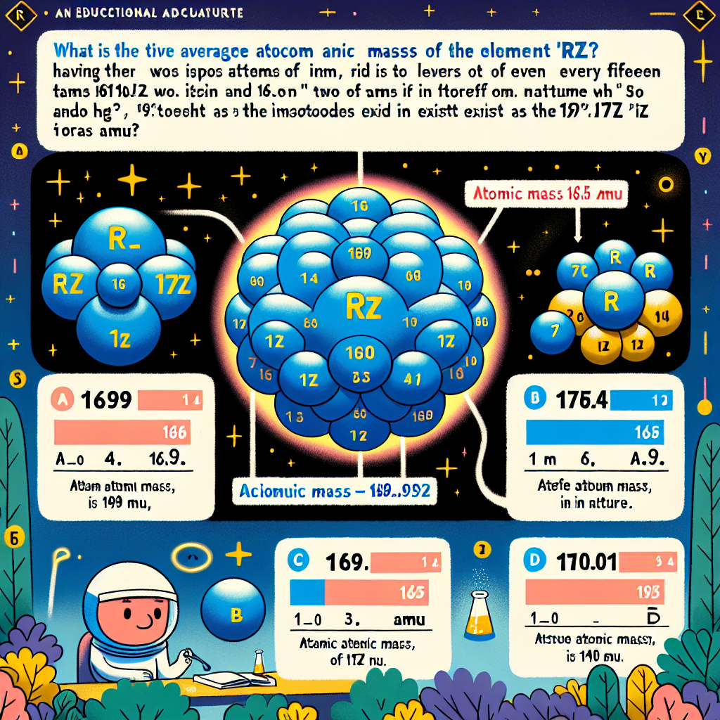\text{Average Atomic Mass} = ( \text{fraction of 169Rz} \times \text{mass of 169Rz}) + ( \text{fraction of 171Rz} \times \text{mass of 171Rz})