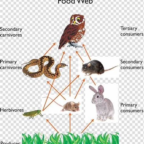 - Grass and seeds (Producer) → Mice (Primary consumer) → Owls (Secondary consumer).