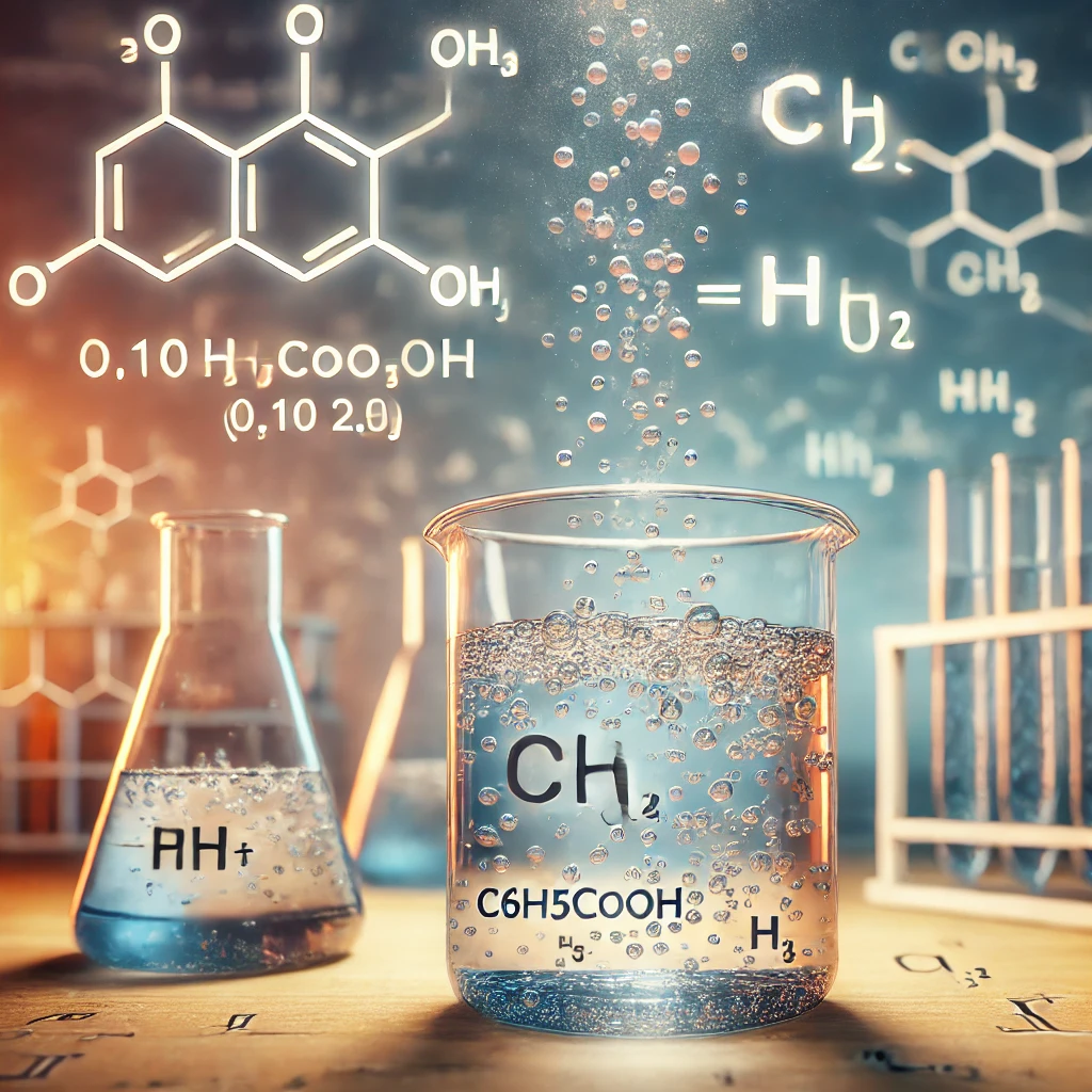 To calculate the pH of a 0.10 M benzoic acid (C6H5COOHC_6H_5COOHC6H5COOH) solution, we use the acid dissociation constant (KaK_aKa) and set up an equilibrium expression.