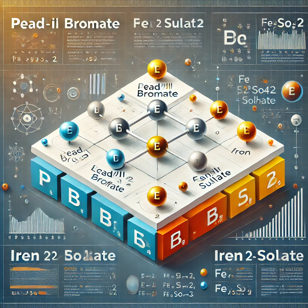 Lead can exhibit multiple oxidation states, but in this case, it has a +2 charge (Pb²⁺). The bromate ion (BrO₃⁻) carries a -1 charge. To balance the charges, two bromate ions are needed for every lead ion, resulting in Pb(BrO₃)₂.